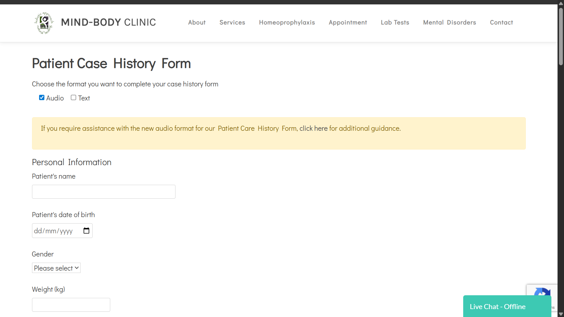 For many years, Mind Body Clinic London has served a diverse community, including many patients from Pakistan for whom English is not a first language. The clinic’s web form was text-only, which presented a significant barrier for anyone who struggled with typing detailed responses in English.